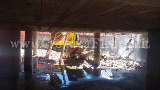 BACOLI – Oltre vent’anni di polemiche, segnalazioni alle autorità locali, denunce ai media. Oggi, finalmente, l’epilogo: la struttura abusiva che da decenni ristagna in condizioni di assoluta fatiscenza in prossimità della Casina Vanvitelliana del Fusaro va giù. Stamane i primi colpi della ruspa che eliminerà da quell’area il fabbricato in cemento armato di due piani fuori terra, di cui uno sottoposto alla strada e l’altro rialzato rispetto alla medesima.