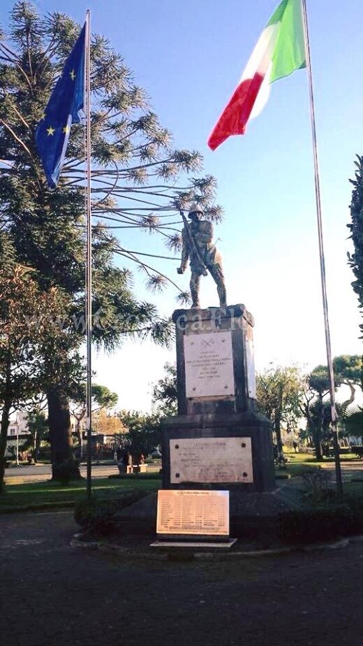 BACOLI – Il Milite Ignoto, Monumento ai Caduti del Comune di Bacoli, ha oltre 100 anni di storia. E per un centinaio d’anni è rimasto sempre uguale, con quel fante in posizione ricurva che campeggia sull’altare in cui sono impresse le iscrizioni marmoree su cui si scorgono i nomi dei soldati e marinai caduti durante la Grande Guerra. Successivamente, poi, fu aggiunta anche la lapide con l’elenco dei caduti anche della seconda Guerra Mondiale e soltanto un anno fa la scoperta di altri nominativi che erano stati dimenticati negli anni addietro. Nel corso dei decenni, di generazione in generazione, la statua e tutto il complesso lapideo-marmoreo del mausoleo su cui si erge, hanno assunto un valore storico, simbolico, aggregante, per la comunità bacolese, con i cittadini che, rievocando ogni volta il passato (anche indirettamente), lo hanno finanche inteso come punto d’incontro per gli appuntamenti quotidiani, con la sua posizione dominante tra l’ingresso principale alla Villa Comunale e lo sguardo rivolto verso il centro storico.