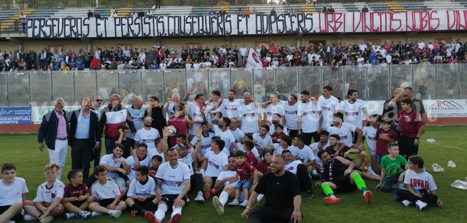 IL RITORNO IN D – I diavoli rossi del presidente Di Costanzo, dopo un anno di purgatorio, tornano in serie D al termine di un campionato avvincente. Grande folla sugli spalti con duemila tifosi granata che hanno gremito il “Domenico Conte” dove campeggiava uno striscione con scritto: “Perseveras et Persistis Consequeris et Adipisceris. Urbi Vincitis Nobis Vincitis”. Festa in campo e sugli spalti. Bentornato Diavolo!