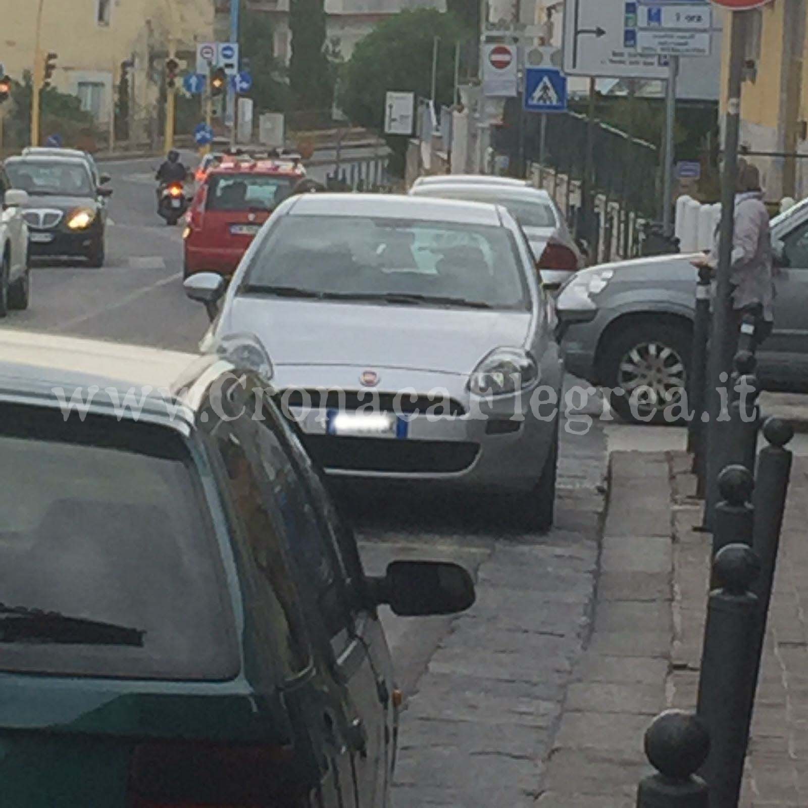 RICEVIAMO E PUBBLICHIAMO – Gentile redazione, pochi minuti fa questa macchina ha fatto causare un incidente in via Solfatara nei pressi del parco Di Bonito. La macchina che esce dal parco sta ferma perché ha tamponato un motorino. Sta arrivando l’ambulanza ma non si è fatto nulla di serio per fortuna! Purtroppo il fenomeno della sosta selvaggia in via Solfatara continua senza che nessuno muova un dito. Dei vigili nemmeno l’ombra visto che sono tutti impegnati tra via Napoli e il centro storico.