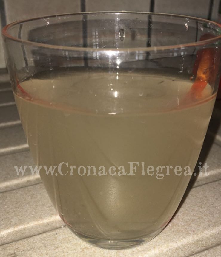 RICEVIAMO E PUBBLICHIAMO – Gentile direttore, con questa foto ti faccio vedere come esce l’acqua dai rubinetti della case del lotto 16 a Monterusciello. E’ accaduto venerdì dopo che era mancata, poi la sera tardi era ritornata buona e da stamattina ecco come esce.