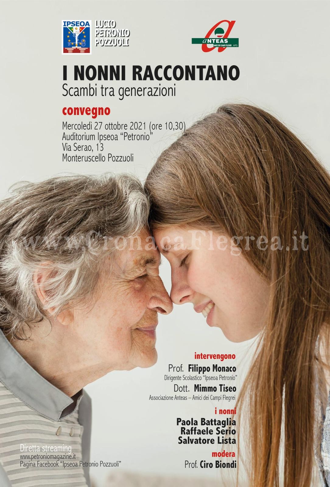 POZZUOLI – “I nonni raccontano. Scambio tra generazioni” è il titolo del convegno che si terrà domani alle 9.30 nell’Auditorium dell’Ipseoa Petronio a Monterusciello. L’iniziativa voluta dall’Ipseoa Petronio è organizzata in collaborazione con l’associazione di promozione sociale “Anteas. Amici dei Campi Flegrei”. Partecipano il dirigente scolastico, Filippo Monaco, Mimmo Tiseo dell’associazione Anteas e i nonni Paola Battaglia, Raffaele Serio e Salvatore Lista. Modera Ciro Biondi. «I nonni sono un patrimonio fondamentale per le nostre comunità – spiega Filippo Monaco, dirigente scolastico – purtroppo i tempi in cui viviamo non sempre danno la possibilità ai giovani di apprezzare e valorizzare queste figure familiari. Per questo come istituto abbiamo pensato di organizzare questo evento che, immaginiamo, possa portare in futuro a delle forme di collaborazioni con gli anziani attraverso progetti e iniziative; l’obiettivo è consentire la valorizzazione della risorsa-anziano e poi consentire ai ragazzi di approfondire la storia delle nostre comunità, i mestieri e le tradizioni. Si tratta di informazioni che non si possono trovare sui libri di scuola e che, purtroppo, tendono a sparire. Come Scuola abbiamo il dovere di valorizzare il territorio anche in questo modo e fare di tutto per non disperdere questo fondamentale patrimonio». L’evento sarà in diretta streaming sul sito www.ipseoapetronio.edu.it e sulla pagina Facebook “Ipseoa Petronio Pozzuoli”