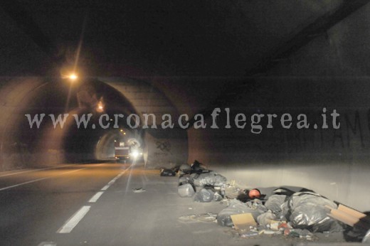 POZZUOLI – La storia si ripete, ancora una volta le piazzole d’emergenza del tunnel Corvara sono stracolme di rifiuti. Il traforo che collega via Campana (Pozzuoli) con via Masullo (Quarto) continua ad essere uno dei posti più “graditi” per lo scarico abusivo di rifiuti. Il buio e le auto che passano ad alta velocità creano il giusto “ambiente” per poter scaricare indisturbati i propri rifiuti. Numerosi sono i sacchi della spazzatura depositati nelle piazzole dedicate alla sosta d’emergenza. Tra i rifiuti più gettonati ci sono gli scarti dei lavori edili provenienti verosimilmente da piccole ristrutturazioni domestiche.