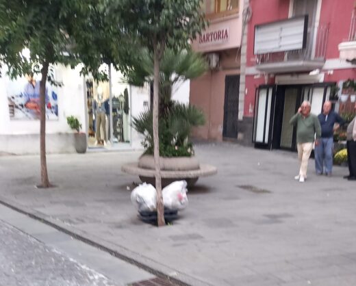 POZZUOLI – Ci sono diversi bei sacconi pieni di rifiuti ad accogliere turisti e avventori a Pozzuoli. Immagine desolante che arriva dal centro storico e a pochi passi da Piazza della Repubblica, nel cuore della città. I sacchi sono stati abbandonati nel pomeriggio sul marciapiede a poca distanza dalla “fontana dei quattro cannelli” e davanti ad un’aiuola in via De Fraia.