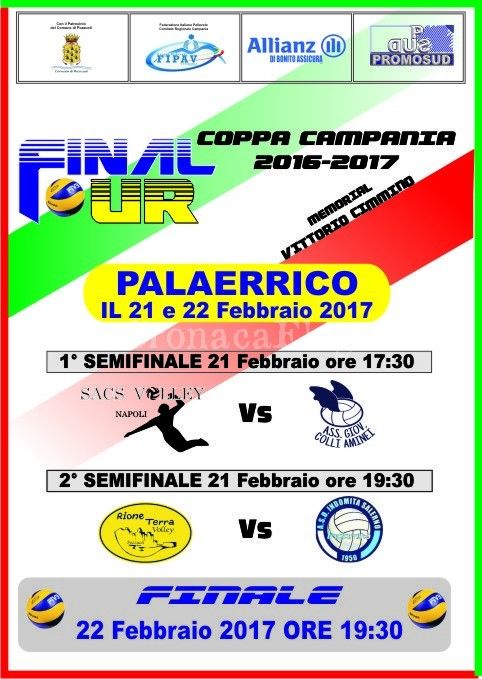 POZZUOLI– La notizia era nell’aria, adesso è ufficiale: la Final Four maschile di Coppa Campania 2016/2017 si disputerà presso il Palazzetto “Errico” di via Solfatara nei giorni 21 e 22 febbraio. Dopo l’edizione del 2014, svolta al PalaTrincone di Monterusciello, sarà ancora la città di Pozzuoli ad ospitare le fasi finali della Coppa Italia regionale.