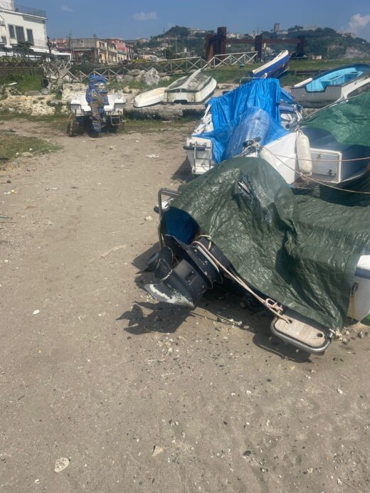 POZZUOLI – Barche abbandonate e ormeggiate senza alcun titolo a via Napoli. E’ lo scempio che va in scena da tempo nella piccola insenatura nei pressi dell’area denominata in dialetto “Aret ‘e blocc”. Qui – come si vede dalle foto – nuove e vecchie imbarcazioni (alcune anche danneggiate) occupano spazi pubblici senza alcuna autorizzazione, deturpando anche l’ambiente. Si tratta infatti di una specifica area del porto di Pozzuoli, situata alle spalle del Rione Terra, e storicamente utilizzata dai pescatori locali, oggi trasformata in un cimitero di banche, da una parte, e ormeggio abusivo dall’altro. Fenomeno che avevamo denunciato già nel 2021, quando barche seppellite e resti sparsi qua e là furono rinvenuti sulla piccola porzione di spiaggia.