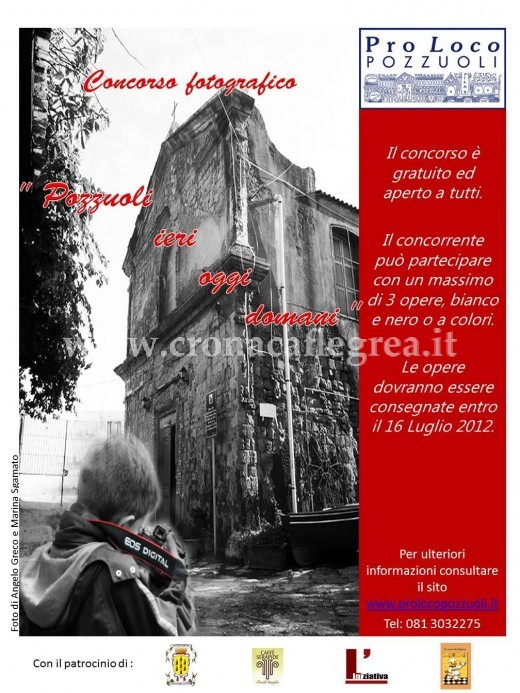 POZZUOLI – Mancano una decina di giorni alla scadenza del concorso fotografico “Pozzuoli ieri, oggi e domani” indetto dalla Pro Loco di Pozzuoli. Un concorso di fotografia amatoriale che ha il duplice compito di sponsorizzare il territorio e cementare il legame tra Pozzuoli ed i suoi cittadini. “Il concorso è stato bandito per coinvolgere il maggior numero di persone nella valorizzazione e promozione del territorio puteolano, obiettivo primario, peraltro, della pro Loco Pozzuoli”. È chiaro il presidente della Pro Loco Giorgio Cirillo, che poi precisa anche il senso della Pro Loco stessa”. Amicizia, passione e territorio, questo sono i sentimenti che spingono la Pro Loco in un lavoro quotidiano sul territorio.