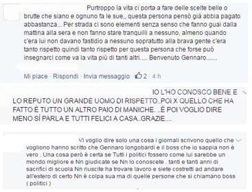 BENVENUTO – Tra i commenti anche i racconti di coloro che affermano di aver conosciuto Gennaro Longobardi, descrivendolo come una persona diversa da quella che le cronache per anni hanno raccontato “…Questo uomo non ha mai toccato nemmeno un fiore, auguri alla famiglia spero presto anche il mio torna a casa…,” e ancora “..per strada ci sono elementi senza senso che fanno guai dalla mattina alla sera e non fanno stare tranquilli a nessuno, almeno quando c’era lui non davano fastidio a nessuno sopratutto alla brava gente c’era tanto rispetto quindi tanto rispetto per questa persona che forse può insegnarci come va la vita più di tanti altri….. Benvenuto Gennaro..”