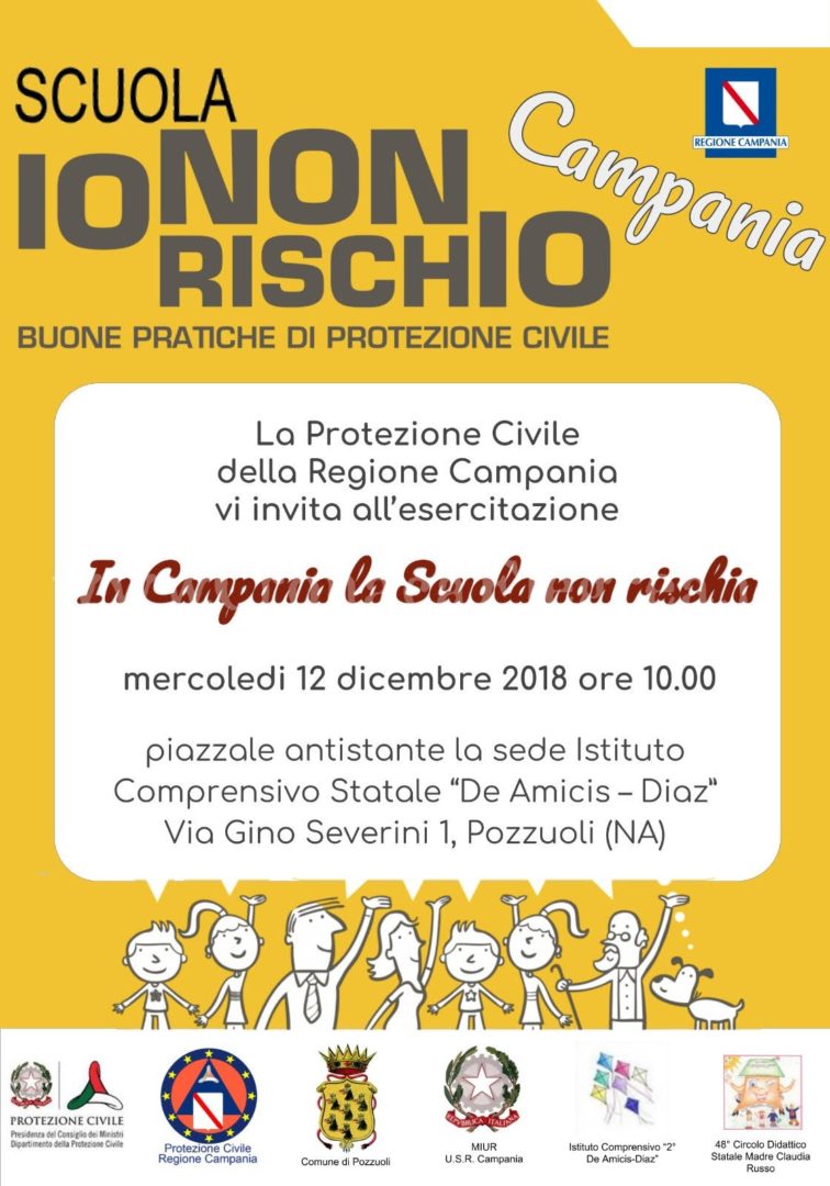POZZUOLI – Una simulazione di evacuazione per fenomeni sismici andrà in scena mercoledì 12 dicembre nel quartiere di Monterusciello. La manifestazione è stata organizzata da Antonio Scarfato, preside dell’istituto Comprensivo Statale “De Amicis-Diaz”, insieme alla Protezione Civile della Regione Campania. L’esercitazione, dal titolo “Io non rischio”, è finalizzata a impartire le buone pratiche agli studenti delle scuole elementari e medie. L’appuntamento è alle ore 10 nel piazzale antistante la sede dell’istituto scolastico in via Gino Severini, a Monterusciello.