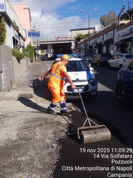 POZZUOLI – Nel tardo pomeriggio di oggi una piccola voragine si è aperta in via Solfatara, nei pressi del ponte della Metropolitana e del murale dedicato a Sophia Loren. Sotto le incessanti piogge che da tre giorni stanno colpendo Pozzuoli e i Campi Flegrei, il manto stradale ha ceduto in un punto precedentemente sottoposto a un intervento da parte del comune di Pozzuoli. La voragine, infatti, si è aperta proprio nel punto in cui sei giorni erano intervenuti per il ripristino del manto stradale. Operazione che era stata annunciata dall’assessore alla Viabilità, Vittorio Gloria. “Ci sono giornate in cui il territorio parla…e noi ascoltiamo. A volte lo fa con un cartello piegato, un segnale danneggiato, un palo caduto, una striscia sbiadita. – aveva scritto il rappresenta in Giunta del gruppo “Pozzuoli al Centro” – Sono dettagli che molti non notano, ma che raccontano una cosa importante: la cura fa la differenza. In queste ore sono stati eseguiti diversi interventi su segnaletica, pali, attraversamenti e aree di sosta: piccoli pezzi di città che tornano al loro posto, uno alla volta. Ogni palo rialzato, ogni cartello sistemato, ogni spazio ripristinato è un gesto di rispetto verso chi vive il territorio ogni giorno. Perché la manutenzione non è solo tecnica. È attenzione. È presenza. È responsabilità.”