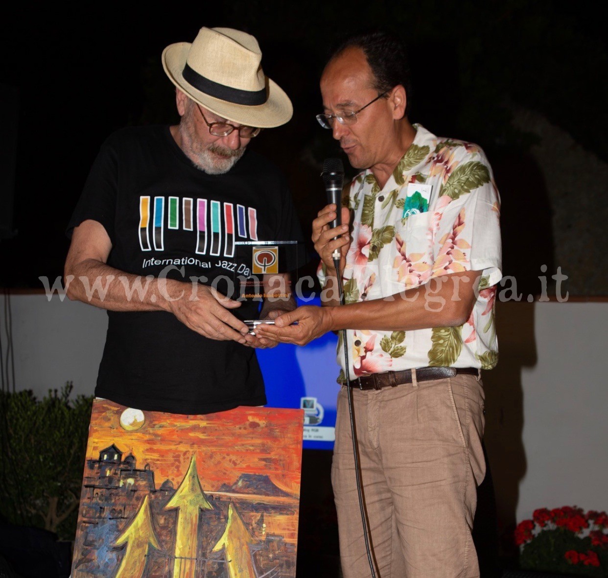 IL PRIMO PREMIATO – Il Maestro Isabettini ha ricevuto il Premio – durante un concerto programmato del Pozzuoli Faber Jazz Festival – presso l’incantevole ed antichissimo Tempio di Nettuno. L’artista, che ha avuto la riconoscenza da Antimo Civero (uomo-factotum del Festival Jazz puteolano), si è mostrato molto commosso, e grato alla Giuria selezionatrice. Inoltre, il Maestro ha eseguito anche un’opera dal vivo, regalando ai presenti una vera e propria performance artistica unica, sulla scia del metodo «En plein air» degli Impressionisti francesi. Ecco alcune parti della motivazione dell’assegnazione della vincita: «Nato e cresciuto a Pozzuoli, ha assistito giovanissimo allo sgombero del Rione Terra, di cui è testimone e divulgatore. Si affianca, adolescente, agli studiosi e agli artisti più anziani e ricchi di esperienza nello studio del Rione Terra e di tutto il territorio puteolano, arricchendo nel tempo la propria cultura personale, che poi trasferirà, come conoscenza e coscienza collettiva, agli abitanti e appassionati della storia locale, attraverso i suoi dipinti e illustrazioni, i suoi scorci e i paesaggi, quasi un moderno rappresentante dell’antica scuola di Posillipo. Il suo impegno più grande, oltre ai dipinti che ne caratterizzano la produzione artistica, è quello sociale: impegnato da sempre a tenere viva la memoria dei luoghi e della gente che li ha abitati, perché solo così si evita che questi muoiano nell’oblio più totale. Ci ha accompagnato, e lo fa tutt’ora, a conoscere la storia e il patrimonio dei beni culturali, a conoscere le tradizioni e la cultura materiale. Grazie a lui, oggi, possiamo davvero dare uno sguardo al territorio e le sue trasformazioni, negli ultimi 40 anni. Una sua battaglia è quella relativa alla fruibilità dei siti archeologici e monumentali della Città e, più in generale, dei Campi Flegrei. Protesta e manifesta contro i meccanismi, che ancora tengono fuori dagli itinerari regionali e nazionali un patrimonio straordinario di archeologia e di opportunità occupazionali.»