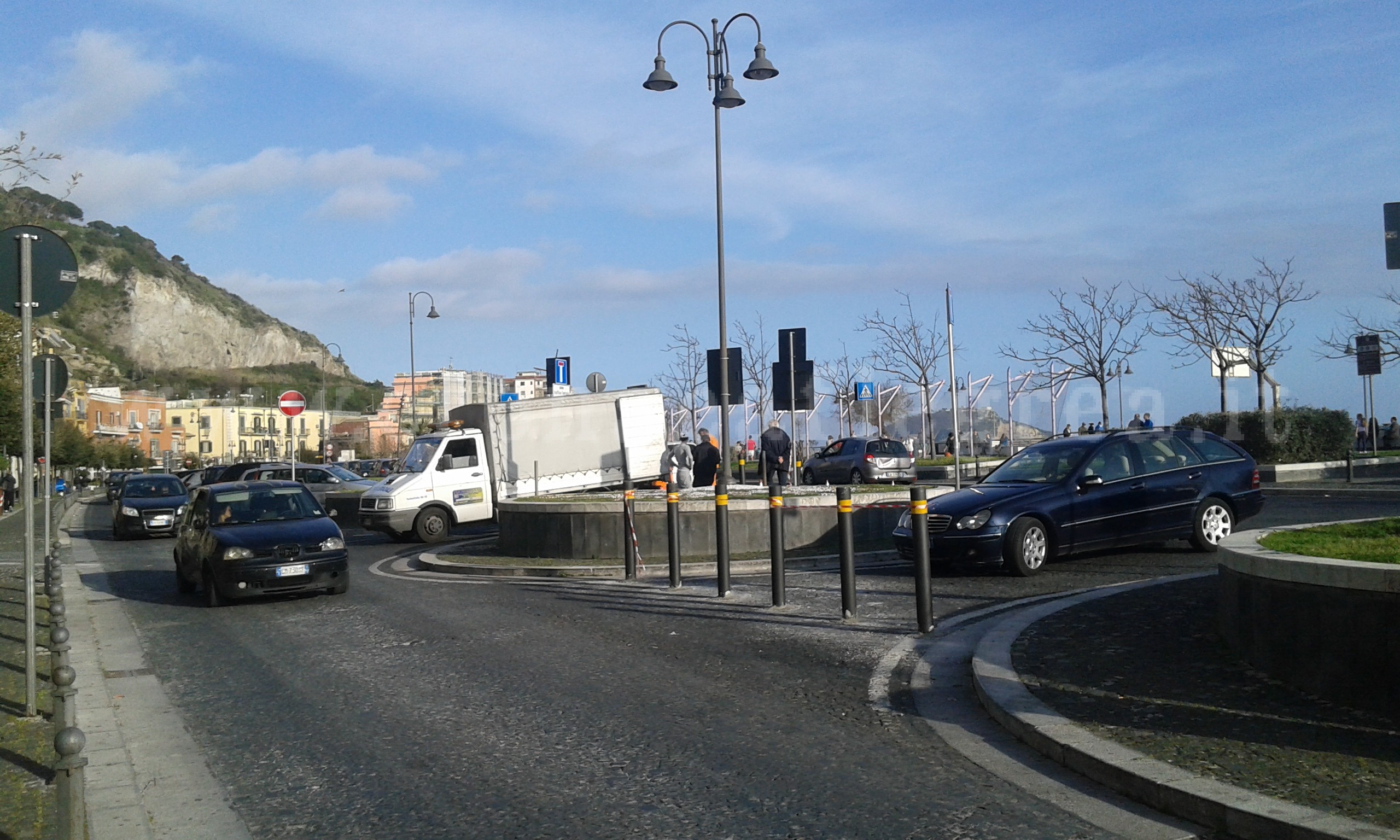 I LAVORI – Questa mattina, tra lo stupore dei residenti e dei titolari di attività commerciali, gli operai della segnaletica stradale del comune di Pozzuoli hanno chiuso la secondo rotonda (partendo da Napoli) sia in entrata che in uscita. Assieme ad essa saranno chiuse anche le “uscite” di altre due rotonde. Non è ancora chiara la motivazione del dispositivo: se la chiusura della seconda rotonda può essere addebitata al fatto che quello è l’unico “punto cieco” alla telecamere, per le altre la spiegazione è difficile. Si può azzardare che il dispositivo dei paletti possa servire a creare un stallo per lo scarico delle merci, dato che la ZTL integrale di via Napoli non prevede l’ingresso ai mezzi commerciali.